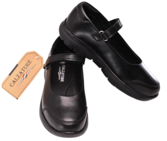 GIRLS LEATHER BLACK KIEV COMFORT STRAPPY COURT